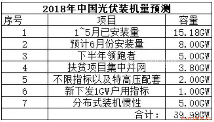 上述表格是对2018年全国光伏装机量的预测,接下来我们逐条分析。