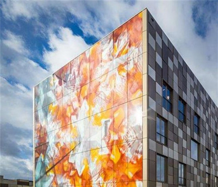 如果在某个艺术园区或是城市街角看到此类丰富图案的建筑立面,不知缘由的吃瓜群众们一定不知道这个如何实现,它不是一块布艺或者是数码显示屏,而是经过设计师头脑风暴设计出来并运用彩釉玻璃实现出来的。