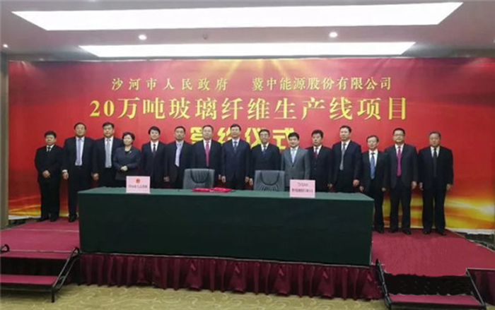 冀中能源20万吨玻璃纤维池窑拉丝生产线项目由世界500强之一的冀中能源集团核心企业冀中能源股份公司(上证000937)投资,项目选址于沙河市经济开发区高村以东,压延玻璃小区以南,占地510亩,总投资30亿元。本次签约项目占地350亩,投资20亿元,建设两条年产10万吨级玻璃纤维池窑生产线及配套设施,建成后实现年销售收入8.9亿元,利税3.5亿元。远期规划建设第三条年产10万吨玻璃纤维池窑生产线,项目达产后实现年产玻璃纤维原丝30万吨并延伸玻纤深加工制品产业链。