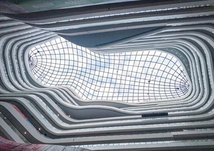 这是一个所有玻璃全是异形的双曲面幕墙工程;