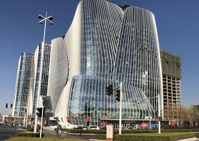 这是郑州市异形玻璃幕墙工程的一个地标性建筑——融创文化大厦项目,施工难度超乎想象。