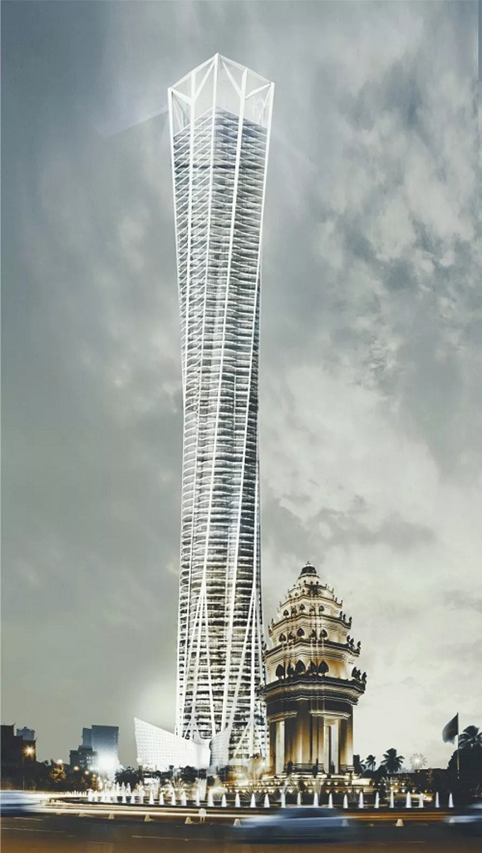 以玻璃外壳的新世界贸易中心将在金边建造,楼高485米,共85层,靠近诺罗敦大道。