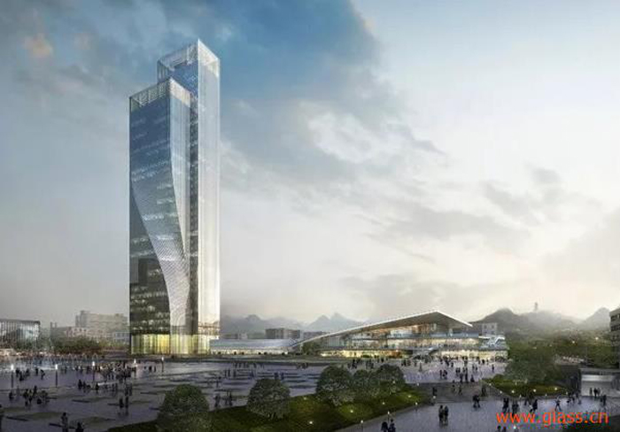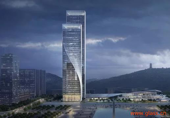 该项目外形极具辨识度,大扭拧角度的幕墙可以在领先时间抓住所有人的视线,建筑形体上的非线性与线性曲线相互交织,柔化立面轮廓,钢筋水泥间直线与曲线咬合错叠,玻璃幕墙随之弯转变化,以坚硬的建筑材质表现了柔韧的弧度之美。而项目面对广场这一宽阔的开放空间,让该建筑具备成为标志性塔楼的有利条件。