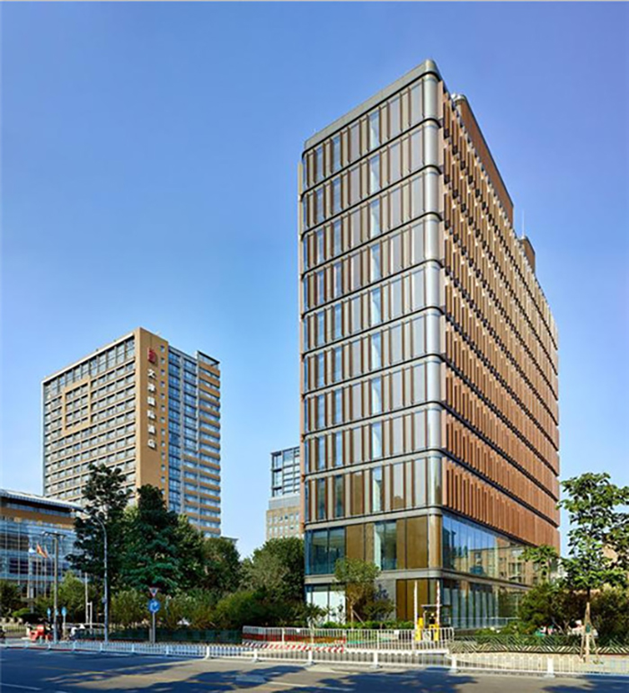 三才堂写字楼:玻璃幕墙与木纹百叶的立体搭配