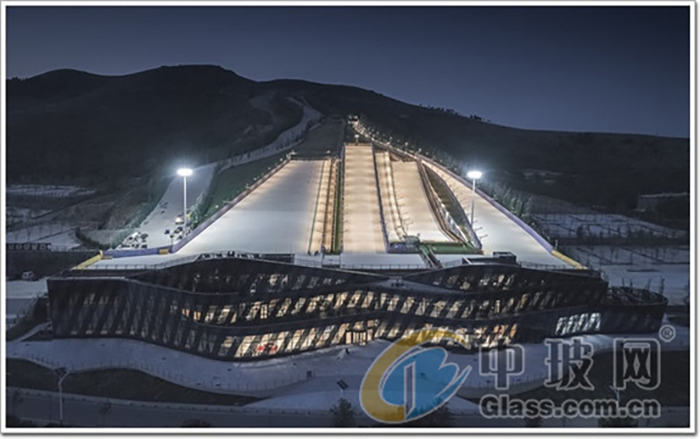 而微观上在山体和过境道路的位置却呈现出断崖的剖面状态,设计应对的策略正是利用其中12米的高差,将服务与被服务的功能在竖向进行划分。让雪场的空间延伸至服务中心上方,而采用全玻璃幕墙打造的多功能服务中心则被隐藏在滑雪者的视线之外,而只见得远山美景和眼前的急速滑道。这样的设计,致使整个接待大厅若有似无的隐藏于山间,设计十分巧妙。