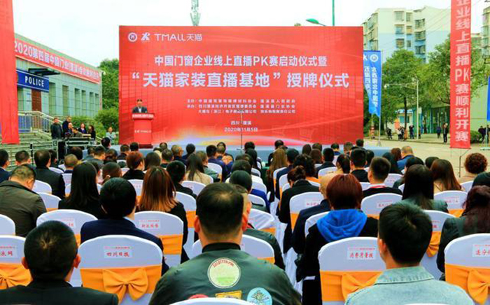 11月5日,由中国建筑装饰装修材料协会、蓬溪县政府主办的中国门窗企业线上直播PK赛启动仪式暨“中国门都·天猫家装直播基地”授牌仪式在蓬溪经开区上游片区举行,蓬溪县被授予“中国门都·天猫家装直播基地”。