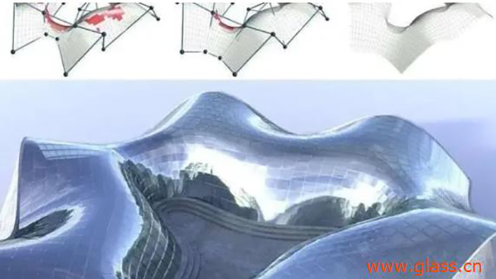 热弯玻璃自19世纪起就开始使用,但直到20世纪90年代才开始普遍使用。不过,这种工艺仍然非常昂贵,而且运输弯曲玻璃的物流也很复杂。大约十年前,人们开发出了一种替代产品—冷弯玻璃。它制作成本低,运输方便,几何和视觉质量也比热弯玻璃好。这种技术还允许建筑师使用特殊类型的玻璃,并准确预估面板上的变形应力。设计冷弯玻璃幕墙需要一个庞大的计算。