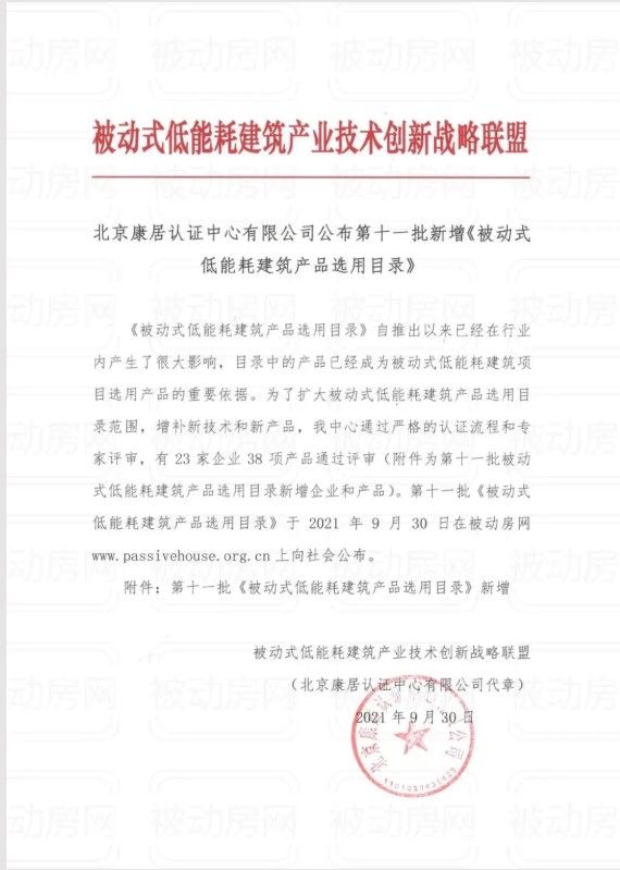 望美实业集团有限公司入围《被动式低能耗建筑产品选用目录》 近日,北京康居认证中心有限公司公布第十一批新增《被动式低能耗建筑产品选用目录》(以下简称《目录》)。 望美实业集团有限公司旗下的门窗产品WM-130铝包木被动窗、WM-110铝包木被动窗和WM-98铝包木被动窗入选门窗组外门窗目录。 被动式低能耗建筑通过建筑自身良好的保温隔热性能,在不使用传统的空调、暖气等主动采暖制冷方式下,被动的利用太阳辐射、人体放热、室内灯光、电器散热等建筑内散热体的自由得热以及热回收新风系统,可通过很少能源投入满足建筑采暖和制冷的能源需求。这对被动式门窗的保温、隔热、气密性、水密性和抗风压性能要求更高,评审标准和过程更加严格。 《目录》自推出以来已经在行业内产生了很大影响,目录中的产品已经成为被动式低能耗建筑项目选用产品的重要依据。 望美集团旗下的门窗产品入围该《目录》,这不仅契合望美门窗倡导绿色低碳的节能生活的理念,对提高生活品质和打造宜居环境有着重要作用。未来,望美集团将在被动式低能耗领域大有作为!