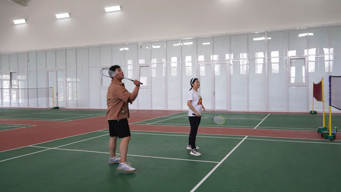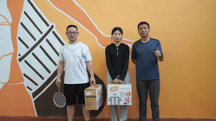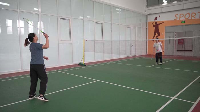 第二个项目是羽毛球赛男女双打。他们步履矫健,默契配合,全力拼搏,一个个精彩的扣压、一次次力挽狂澜的扑救,无不彰显着他们奋力拼搏、永不放弃的精神。