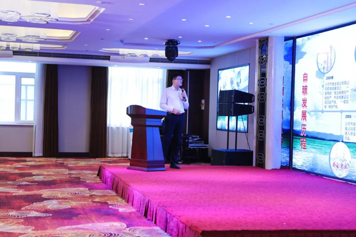 现场播放望美集团白玻产品宣传片后,集团生产常务副总张志勇现场为大家介绍了白玻新品SQ的多重优势与亮点,并为与会客户介绍了集团白玻产品在优化切割、尺寸定制、质量保障等方面可以为客户提供的支持与帮助。
