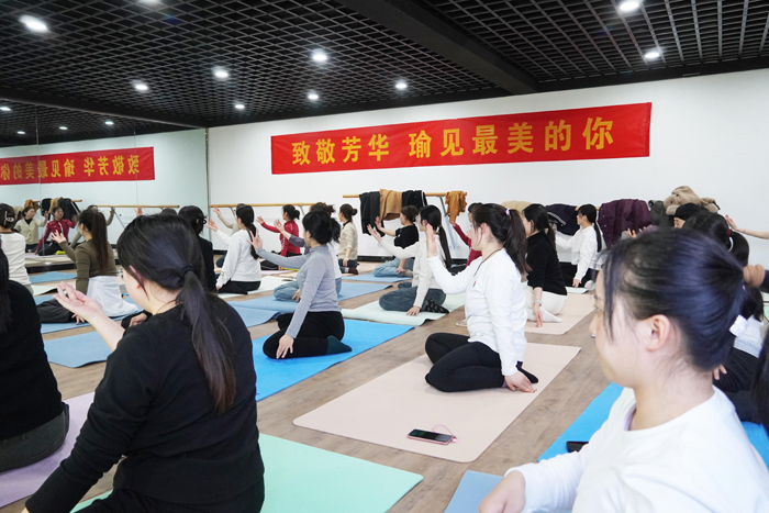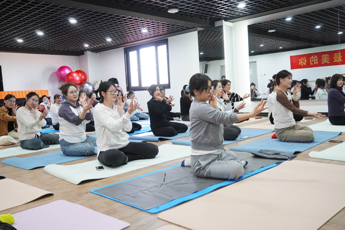 安全公司在文体中心瑜伽馆邀请了38名女职工,为她们精心准备了一场瑜伽公开课。