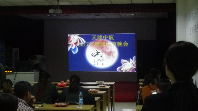 秋月朗照,丹桂飘香。为使员工度过一个欢乐祥和的国庆和中秋佳节,使每一位天津中玻的员工感受到大家庭的温暖,营造出浓厚的团圆气氛,丰富员工的业余生活,9月29日晚,天津中玻举办了一场别开生面迎双节晚会。 经过紧张的筹备工作,晚会于9月29日晚19:00准时在一楼活动室举行。整场晚会,在欢声笑语中进行,来自各个部门的同事分别带来了精彩的诗朗诵、相声、小品、歌曲、舞蹈等节目,赢得全场观众阵阵掌声。 温馨祥和的气氛充满晚会的现场,夜空中的明月似乎也被感染了,散发出更加柔和明亮的光晕。皓月当空,映照着每一位天津中玻人善良、热情、洋溢的笑脸,辉映出所有的天津中玻人年轻、奋进、执著的心灵!我们为了共同的目标而奋斗,我们为了共同的事业而相聚,感谢长期以来一直为实现“天津中玻梦想”而奋战的伙伴们!正因为有了你们的默默奉献和大力支持才有了天津中玻公司今天的不断成长与壮大。我相信在全体同仁的共同努力下,必将克服一个又一个的困难,攀登一个又一个的高峰,逐步实现“变革图强”的宏伟目标。