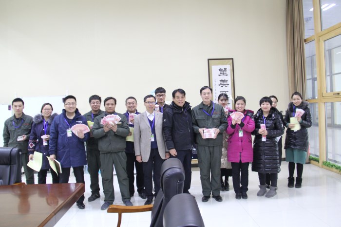 春节临近,河北中玻为感谢全体员工在过去一年里的辛勤工作,2月6日公司总经理林义胜代表董事长亲自为员工发放节日福利,并表达了对员工们的诚挚谢意和新春祝福。此次福利包括公司福利和发给各公司员工的新年红包。 福利和红包的发放受到广大员工的热情拥护与好评。