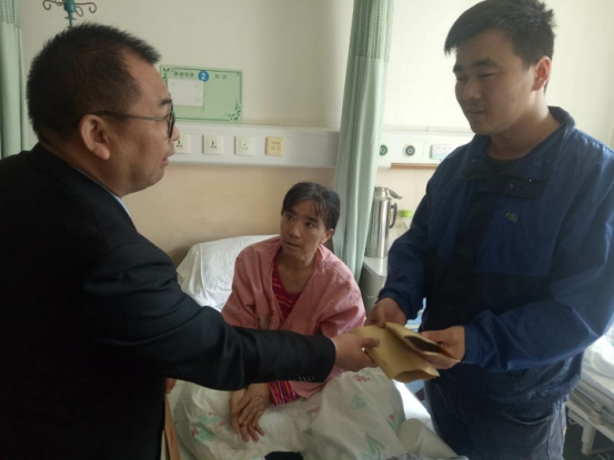 天津中玻全体员工在经公司动员后,纷纷为同事焦月进行捐款。为解燃眉之急,4月9日上午,天津中玻总经理助理张建立代表公司将爱心善款送到了焦月的手上。