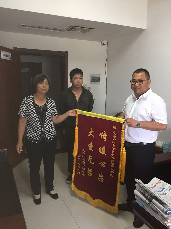 感恩的心,感谢有你。2018年6月21日天津中玻员工受捐家属为感谢公司全体员工支持与帮助送来锦旗,表达对公司全体员工无私帮助的谢意,感谢公司的不离不弃。