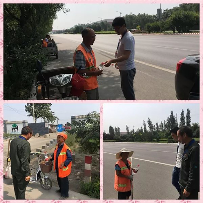 为让环卫工人在炎热的天气下能够喝到清凉干净的水,沙河安全企管部员工自发组织购买矿泉水,驾车来到纬三路,为道路两侧实施清扫和绿植修剪的环卫工人送去夏日的一丝清凉。