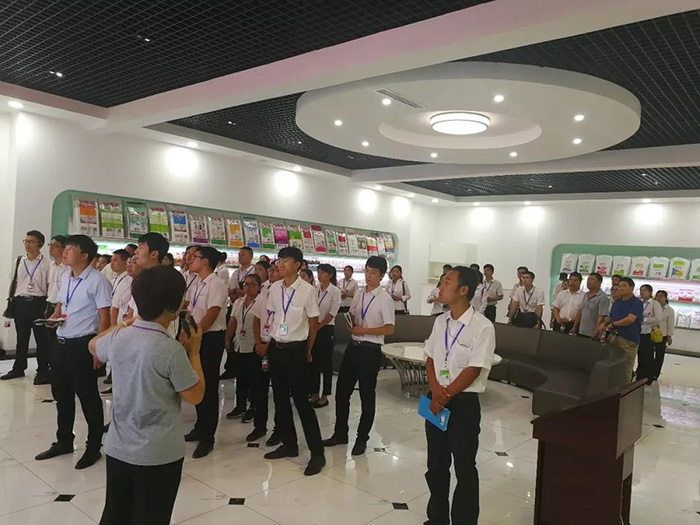 抵达金沙河后,金沙河董事长魏海金对于安全拓展交流团的到来给予了盛情接待。参观期间,讲解员向拓展交流团一行详细介绍了金沙河的发展历程,并带领拓展交流团深入原料、生产车间等现场观摩了金沙河选料、和面、轧饼、切削、烘干、包装等一条龙的全自动、智能化生产过程。