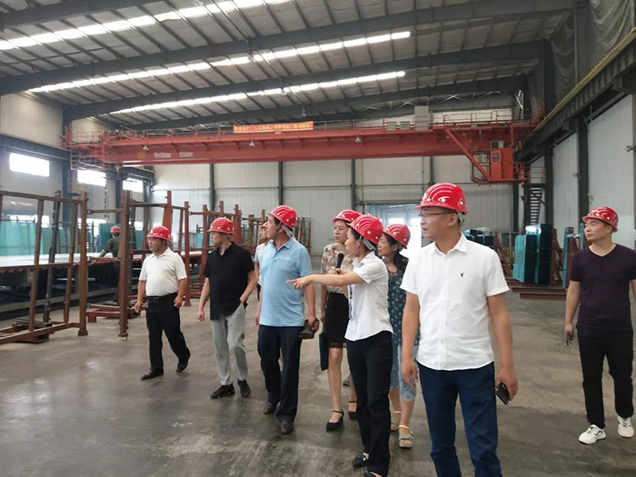 戴局长一行深入冷端车间及退火车间参观,综合办主任为戴局长等一行人详细介绍了公司的发展历程、浮法玻璃生产工艺、生产设备以及企业文化、安全责任制等方面的情况。