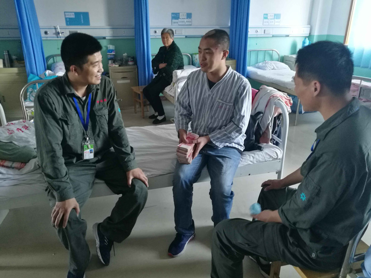 9月30日,沙河安全组织爱心志愿者前往河北省第二医院看望刚做完手术的五线叉车司机孙明凯并为他送去幸福基金。 爱心志愿者一行来到医院,首先转达了公司领导对明凯的祝福,并嘱咐他要安心养病。当爱心志愿者将7万元幸福基金递到明凯的手上时,明凯激动地说道,公司现在面临着这么大的危机,还伸出援助之手帮助他渡过难关,他非常感谢公司,感谢同事们对自己的关心,他表示一定会配合医生的治疗,早日回到安全大家庭,为公司做贡献。 此行爱心志愿者还为明凯带去了销售部同事们的祝福视频,视频中同事们表达了对明凯的想念,希望他早日康复,早日回到安全这个大家庭。明凯看后非常感动,感谢大家对自己关心及帮助。 幸福基金汇集着安全人的每一份爱,给予他力量,做他的后盾,让他感受到身后永远有我们安全一家人。