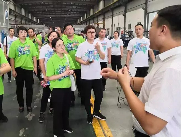 参观团队首先来到集团旗下沙河安全实业有限公司,在生产八线中控室,讲解员详细介绍了玻璃的生产工艺及流程,随后在成品区对机械手等先进设备进行讲解。