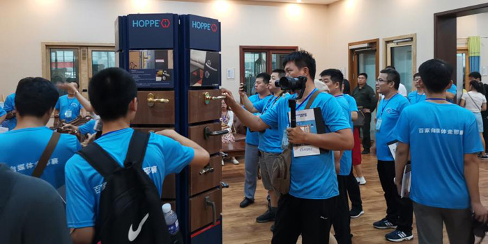 在创新研发中心闫雨的陪同下,参观团一行来到集团旗下的望美实业公司门窗展厅,对望美门窗的产品、性能、工艺进行了细致地了解,并亲身感受了产品性能。参观人员对望美门窗的优良性以及电动开启门窗的科技感充满新奇和赞赏。