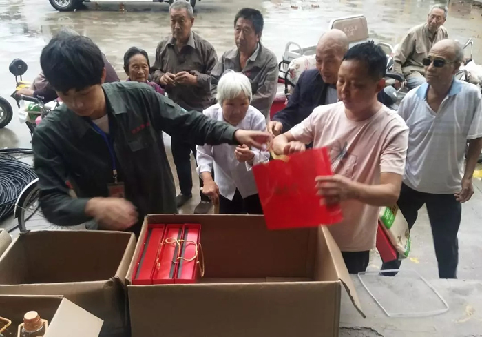 在中秋佳节前夕,9月11日-12日,望美集团旗下沙河安全公司向周庄办事处及周边部分村庄的70周岁以上老人、贫困户送去了节日的慰问。