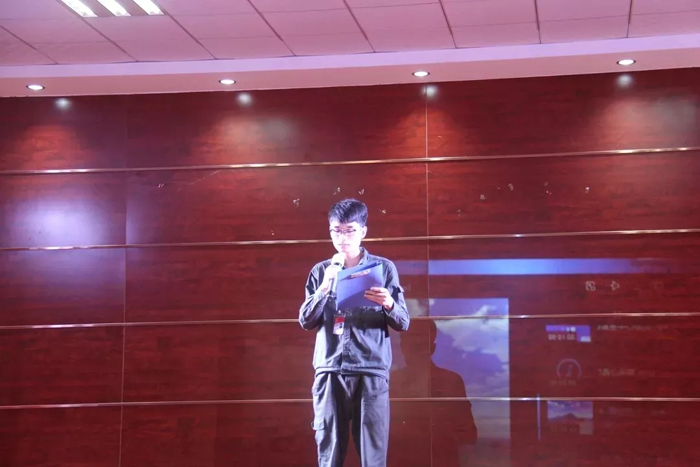 公司发展已经进入转型升级的重要时期,降本增效工作,势在必行,刻不容缓,创新研发中心张伟丹代表明日之星获奖人员发言。