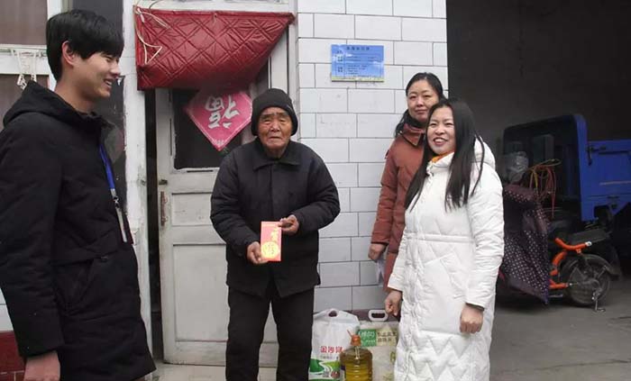 公司代表走进乡村,将慰问品、慰问金送到老人及贫困家庭手中,并提前送上新春的问候与美好祝福。