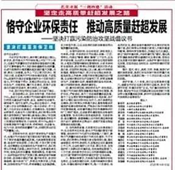 4月12日,邢台20名知名企业家发起联合倡议:“恪守企业环保责任 推动高质量赶超发展——坚决打赢污染防治攻坚战倡议书”。望美实业集团董事长姚建龙参与到此次倡议之中。