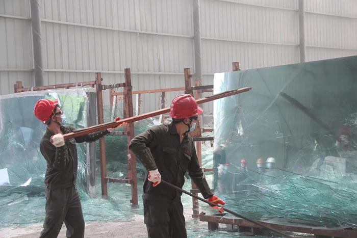 5月20日下午,在集团旗下沙河安全公司销售场地,安全望美生产事业部负责人张利波率领沙河安全玻璃生产线管理者、技术团队一行四十余人,亲自抡锤将质量不合格的玻璃全部砸毁。