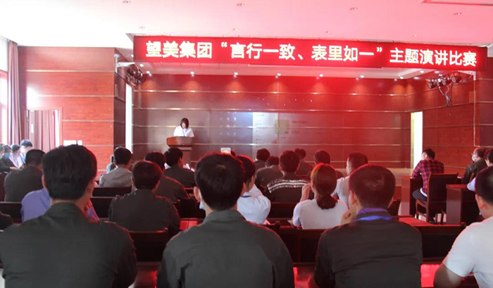 5月27日,一场以“言行一致、表里如一”为主题的演讲比赛在望美集团沙河安全、望美实业、天津中玻、中玻朝阳公司同步举行。 “言行一致、表里如一”是我们开展各项工作的基础,我们只有做好这一点,才能取得他人的信任,而这份信任,则是自己在企业立足、个人发展的关键。同时,做到“言行一致、表里如一”也是公司对每位员工的要求,唯有如此,才是真正的把公司的各项要求落到实处。 口号喊得再响,不如扎扎实实干一场,我们要深刻认识到,行动永远比口号重要。当然,我们不是不需要口号,而是需要把口号进一步落实成实实在在的行动。 5月份,集团下发了关于在全集团开展“言行一致、表里如一”大讨论活动的倡议,通过各种形式的讨论、剖析,让这一主题在全体员工心中扎根、发芽。 在今天的比赛中,参赛选手再次通过演讲的形式,表述对“言行一致、表里如一”的认识,并承诺在今后工作中会继续强化认知,深化执行,让“言行一致、表里如一”在全集团形成一种风气。 四个公司近90人参加此次演讲比赛。经过激烈角逐和现场评委打分,最终评选出一二三等奖及纪念奖进行奖励。 总分环节等待过程中,还穿插有精彩的节目表演,活跃现场氛围。 希望通过本次主题演讲活动,能够强化全员对“言行一致,表里如一”的认知,并内化于心,外化于行,在工作中真正做到言必信,行必果,用扎扎实实的行动践行这一理念。 上下同欲者胜,2020年公司面临的形势全员都有目共睹。在这个特殊的时期,只要我们全员坚守初心、勇担使命、力出一孔、心向一处、全力以赴,那就是无坚不摧的力量;只要我们全员坚持言出必行、矢志奋斗,那就能为公司的发展增添一份力量。