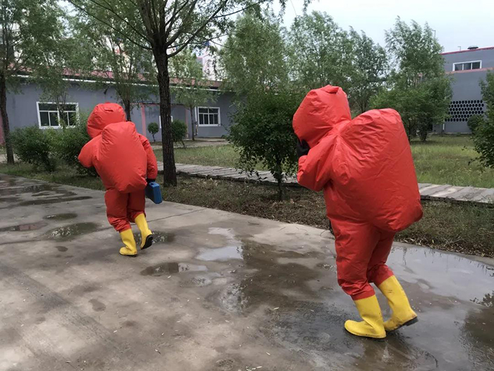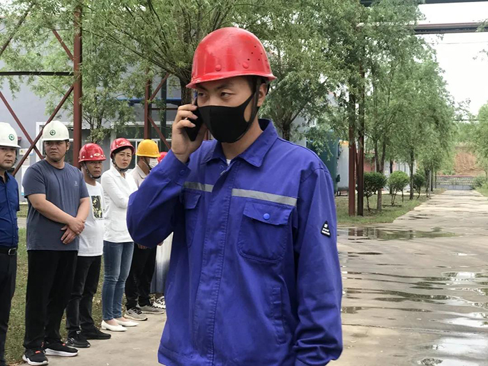 同一时间,公司领导及相关部门负责人赶至现场并查看了解现场实际情况,在各部门的相互配合下,机修人员穿戴重型防护服赶赴泄漏现场进行抢修处理。