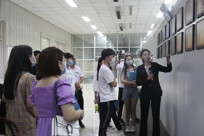 随后,参观学生一行来到信息管理服务中心。在信息管理服务中心,讲解员对望美实业集团的信息化建设情况进行了简单介绍。在电教室,来访的高校毕业生通过观看企业宣传片对望美实业集团有了更深层次的了解。
