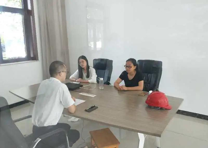 参观了解过后, 人力资源管理事业部招聘培训专员向来访的高校毕业生介绍了望美实业集团的三公平台、晋升渠道及福利待遇,并根据其所学专业及工作经历对有就业意愿的高校毕业生安排其到合适的岗位进行现场面试。