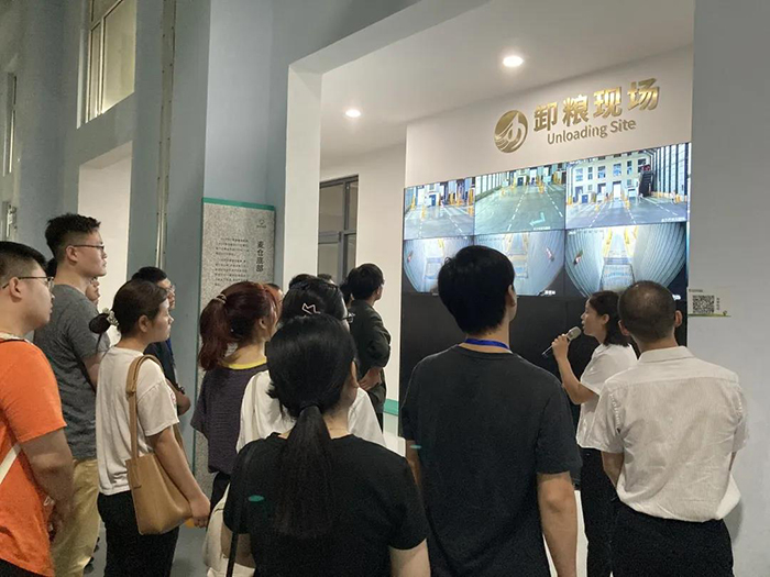 抵达金沙河后,讲解员向大家介绍了金沙河的发展历程,并带领大家深入原粮和生产车间,现场观摩从采购到成品一条龙的智能化生产过程。