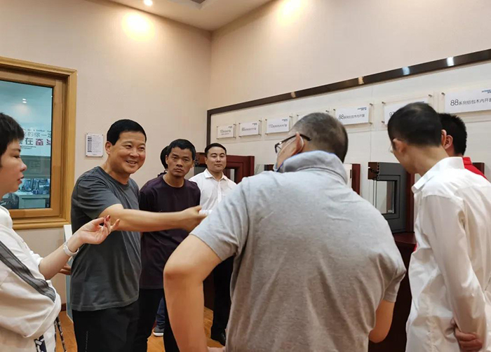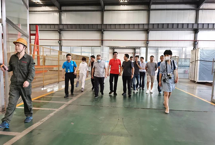 首先,在董事长姚建龙的陪同下,交流团一行来到集团旗下望美实业有限公司,先后对镀膜生产车间、深加工车间、望美门窗展厅进行了参观。工程师对车间生产工艺、先进设备、门窗产品性能等进行了详细讲解。