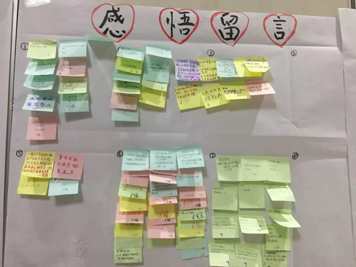 休息期间,参培学员将自己的培训感悟贴在留言墙上,是一份收获,也是一种承诺。