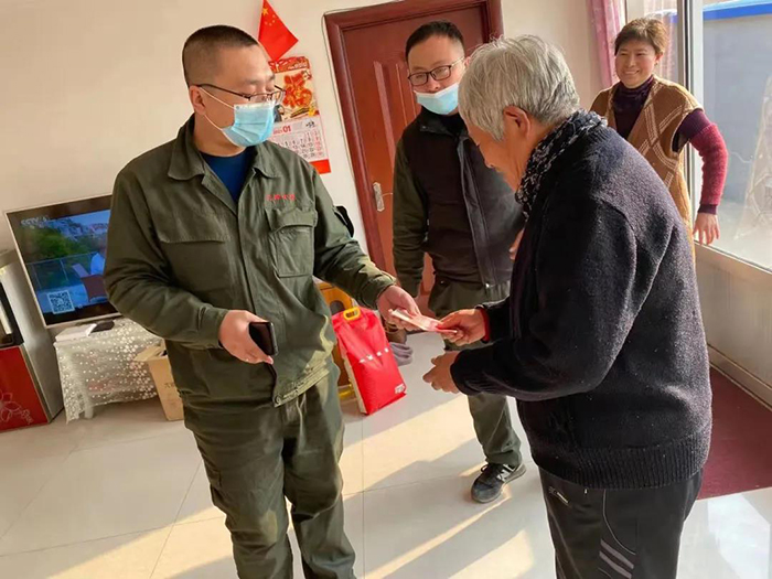 每到一个家庭,父母都十分热情,面对突如而来的惊喜,职工父母感慨万千:没想到自己的孩子在公司上班,每个月有稳定的收入,过年过节有福利,年底了公司还不忘给员工父母送去温暖,这样的公司在蓟县还是头一家。感慨的同时,员工父母的话语里透着感动。