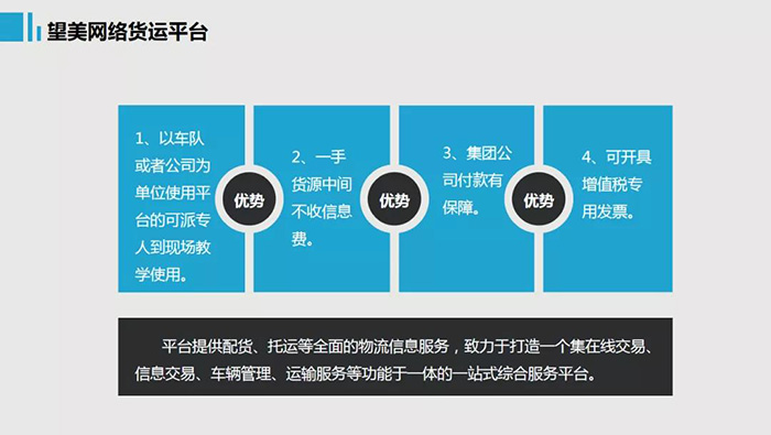 为使货运信息更加流畅,方便用户更好体验,望美网络货运线上平台已经投入使用。在这里,让您更加了解这一平台。
