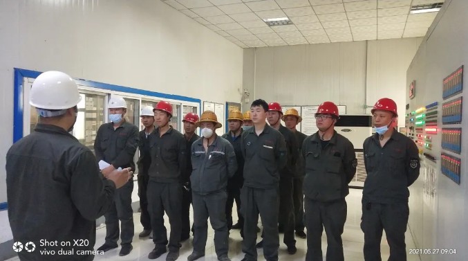 总指挥安全环保部经理王振来下达预案演练程序启动后,熔化岗位中控室的报警器响起报警声音,中控室值班员确认预警后,向预案演练副总指挥勾兴旺经理报告。在副总指挥的安排下,各应急小组进入紧急状态,在穿戴防护用品,佩戴应急设备后,立即对事故现场进行排查和处理,将无关人员有序撤离,并对现场进行隔离。