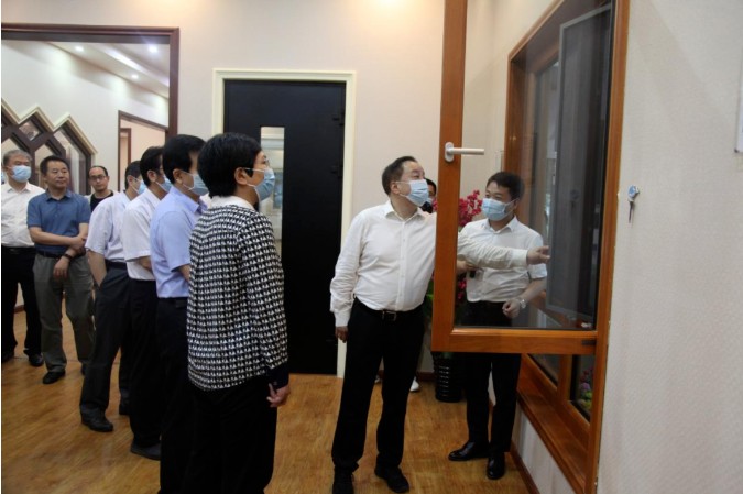 在刘总陪同下,省市各领导走访参观了望美门窗展厅,通过现场讲解人员对望美铝包木门窗各项性能的介绍和演示,各领导对望美公司的产品特点和优势表示赞赏,对公司先进的生产经营理念和先进的生产工艺提出赞扬。在随后的座谈中各级领导对望美集团在节能玻璃、节能门窗领域发展,数字化、智能化车间建设上给予高度认可,对提前的发展前景表示期盼。