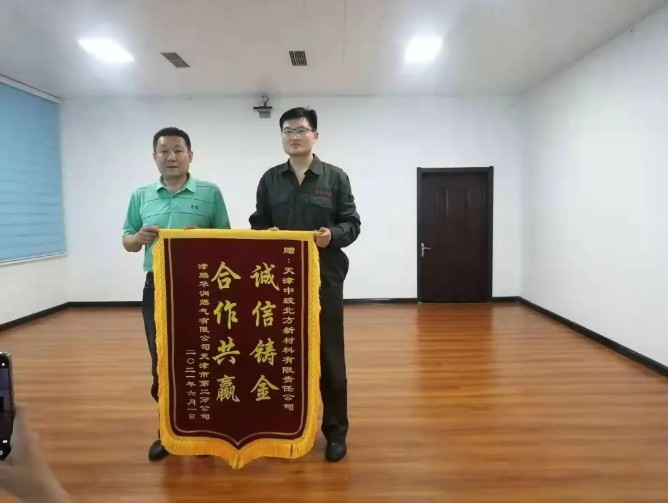 2021年6月29日,津燃华润燃气有限责任公司天津市第二分公司将一面写有“诚信铸金、合作共赢”的锦旗,送到了天津中玻北方新材料有限责任公司,以表达对公司的诚挚感谢。