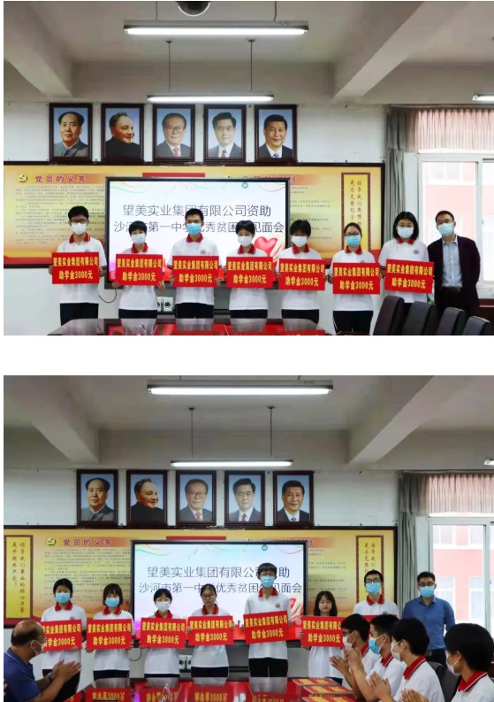 望美集团多年以来,坚持“助学”、“助老”积极投身各类社会公益事业,帮助家境贫寒的学子顺利圆梦。今后,望美将长期搭建爱心平台,帮助更多莘莘学子开启锦绣前程,汇聚爱心力量,共创美好未来,以实际行动践行企业爱心责任。
