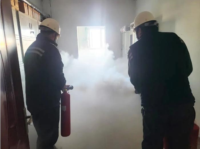 9时20分,随着一阵紧张急促的警报声响起,环宿主管排查发现办公楼218室内冒出浓烟,立即启动天津公司办公楼火灾事故救援预案。应急总指挥王振来下达公司预案启动预警信息,要求各应急处置对伍各尽其责,疏散组迅速带领宿舍成员、办公成员、培训成员快速有序地撤出至疏散集结地点。各楼层疏散组长接指挥部命令按照公司规定逃生路线,分两路有序疏散到办公楼前。