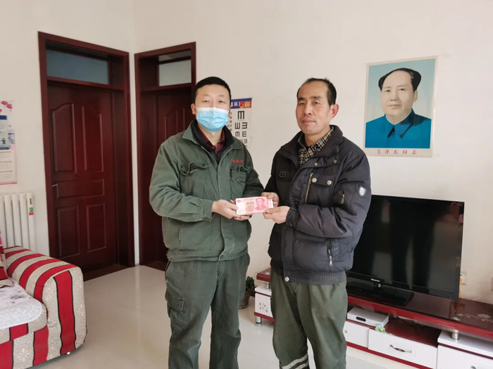 1月19日,集团旗下沙河安全公司,值班经理张士搏为张宏亮送去春节幸福基金。
