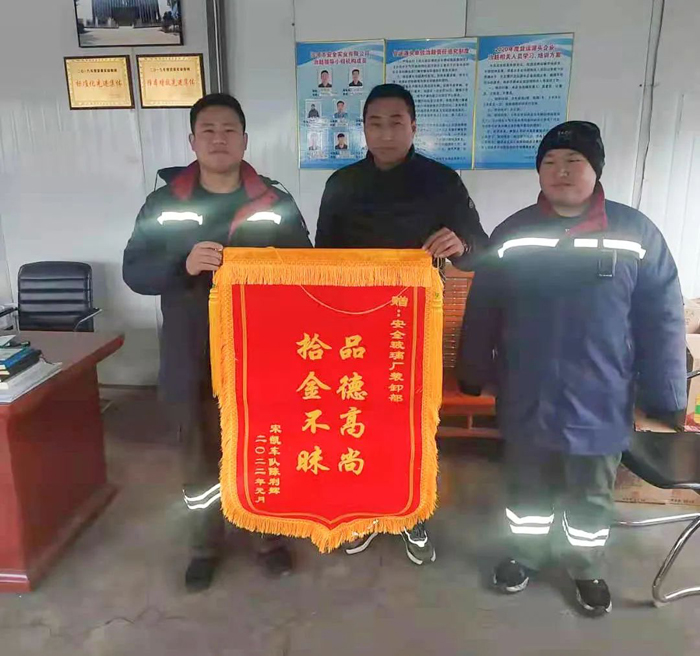 捡到客户的物品及时归还,客户还送来了一面锦旗。