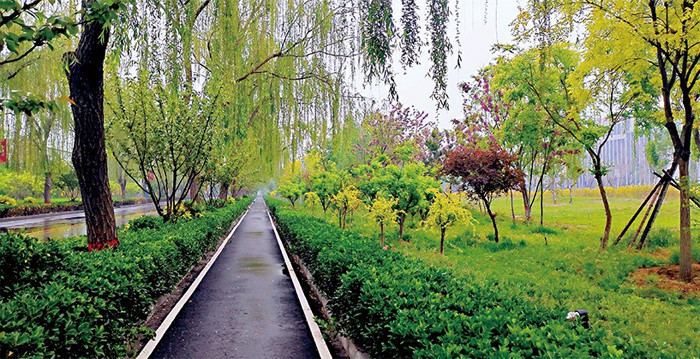 集团1300亩的厂区内,没有灰尘弥漫。2018年,集团累计投入5000万元,修建道路、绿化厂区,打造绿色环保花园式工厂。以厂区干道为主线,坚持点、线、面、环相结合的平面绿化,同时还大力发展立体绿化和墙面绿化,通过乔木、灌木、草甸的合理搭配,打造“生产化+生态化”道路、绿化景观等。