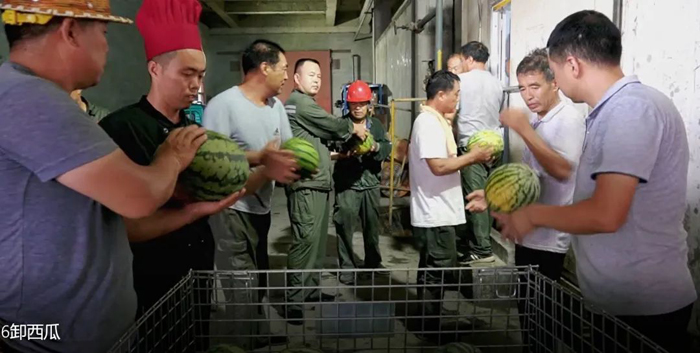 装卸人员、环卫人员、还有产线的同事们都前来帮忙,大家通力协作、互相配合,不一会儿,西瓜就搬运完了。