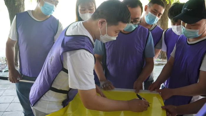 通过分组,成员们迅速组成三支队伍。每队充分发挥集体智慧,选队长、取队名、起口号、绘队旗、摆队型,建立起了自己独特的团队文化,各队学员积极互动,团结协作,团队氛围迅速升温。